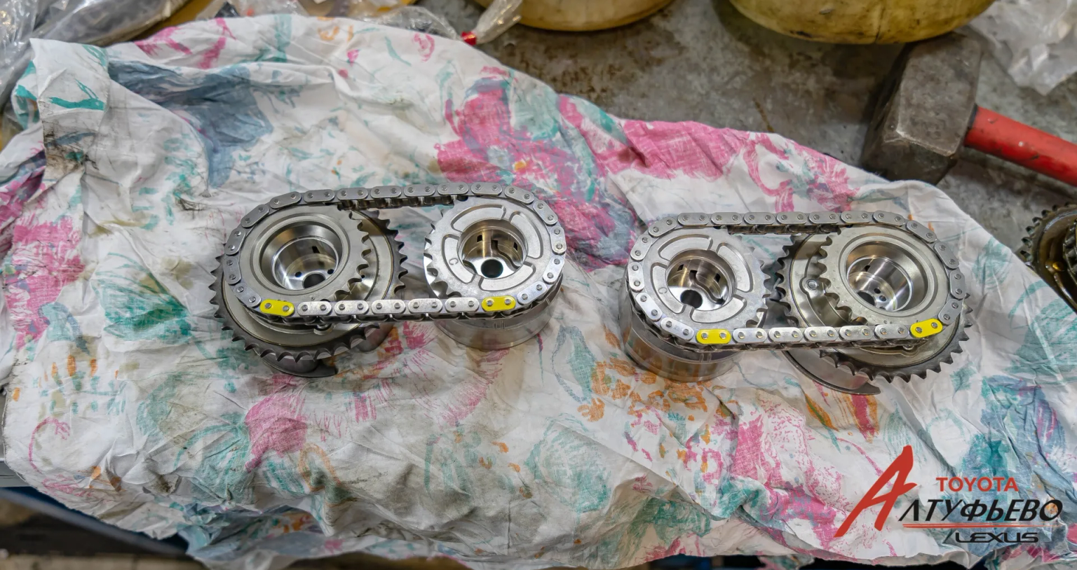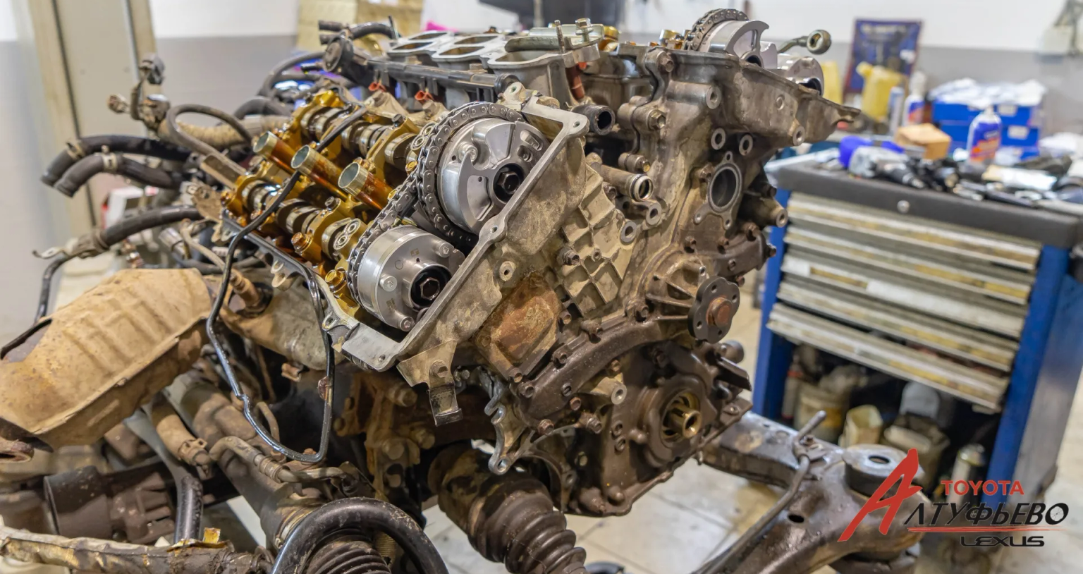 Не так давно к нам обратился владелец автомобиля Lexus RX второго поколения. На нём установлен силовой агрегат “2GR-FE”, который начал сбоить. Владелец отметил появление посторонних звуков, которые доносились из подкапотного пространства, и снижение мощностных характеристик. Диагностика обнаружила неисправность муфты VVT-i и необходимость замены цепи газораспределительного механизма. Последняя ещё могла бы немного походить, но, поскольку пробег на момент ремонта составлял 300 тысяч километров, было решено заменить и её.