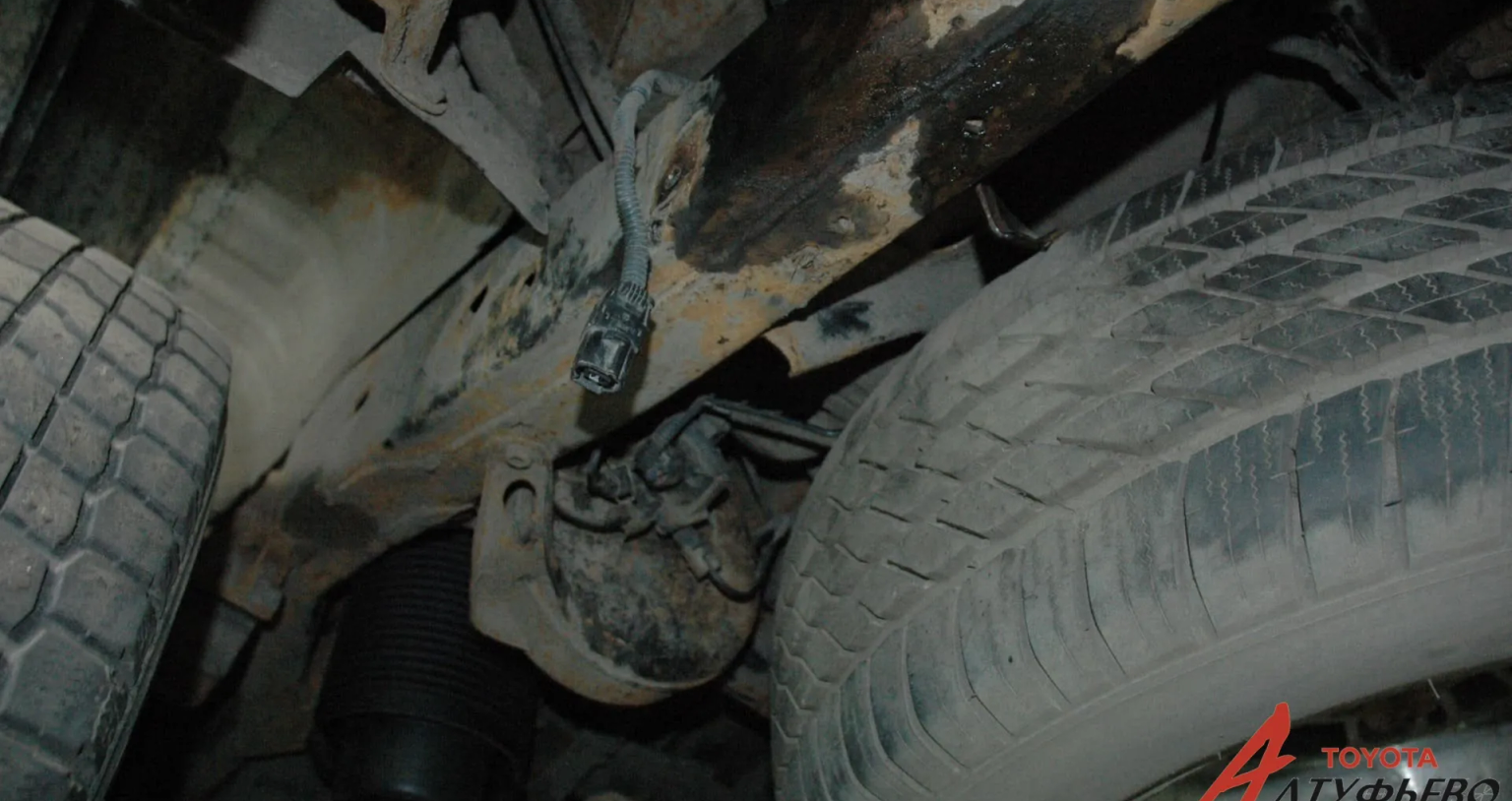 Прослужил он, ни многим ни малым, тринадцать лет, после чего успешно и уверенно вышел из строя. Машина оборудована пневматическими баллонами, а компрессор системы находится в задней части кузова в специальной нише между кузовом и рамой. Сама по себе эта область примечательна тем, что в ней скапливается немало грязи, поэтому мы советуем регулярно промывать её, равно как и раму. По нашему опыту, у 90% машин рама изнутри забита грязью и песком, из-за чего ржавеет и прогнивает изнутри.